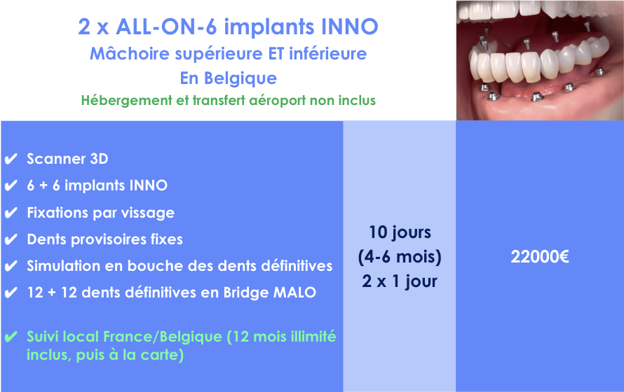 1) Refaire ses dents avec 12 implants INNO (22000€)